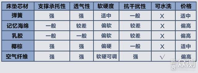 鉴于以上需求,我把目前主流的床垫材质做成了一张表格,方便一目了然。