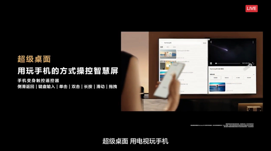 新一代HarmonyOS 3进一步发挥分布式能力,在华为智慧屏S86 Pro带来了“超级桌面”功能,将智能手机的应用带到智慧屏上,点开即用。而手机会化身触控遥控器,取代物理遥控器,助你控制智慧屏。