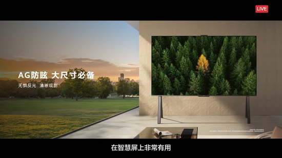 华为给这款大尺寸智慧屏增加了AG防眩技术,通过AG材料将镜面反射转化为漫反射,降低环境光对镜面现实的干扰。新品拥有鸿鹄画质引擎,其中包括迅晰流畅(MEMC)技术,提升运动画面流畅度;绮光绚彩显示技术·大师版,提升画质。此外,这块屏幕还支持120Hz高刷,官方表示,结合迅晰流畅(MEMC)技术,可将网络上24/30fps低帧率片源动态插帧到120帧。