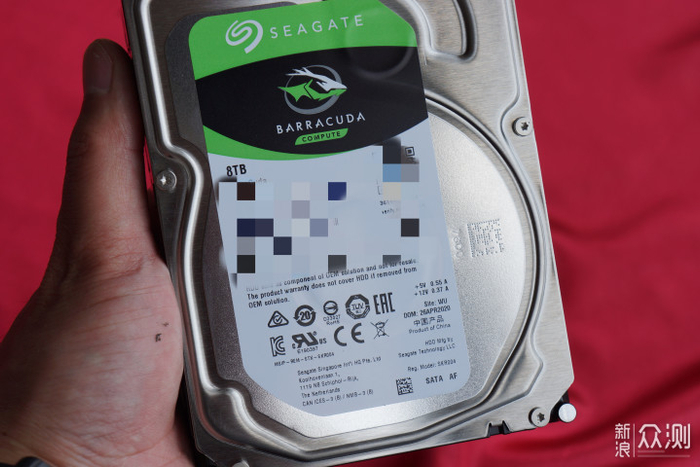 接下来就将这块虽然是新购入的,但是却在家吃灰了快一年的希捷8T硬盘装进Z2S的肚子里吧!装的时候才发现硬盘仓底部的四个孔是搭配赠送的硬盘防震垫对硬盘进行固定作用的,按上缓震垫将硬盘接口对准后往前一推即可完成安装。
