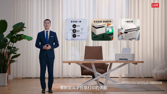 去年华为首次进入整个打印机的品类,当时推出的是黑白激光打印机,今天这个产品在使用上个编辑,跟鸿蒙生态结合更紧密,也支持了更多色彩。独立的墨水盒的设计,可以整取整换,可以打4000张的彩色文档以及7500张的黑白文档。