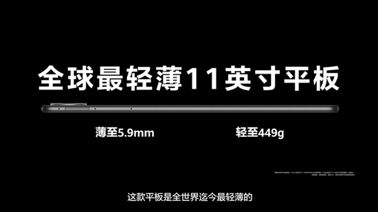 轻薄是这款产品的另一个特性,整机重量449克,厚度为5.9毫米,华为表示,它也是全球最轻的11英寸平板。