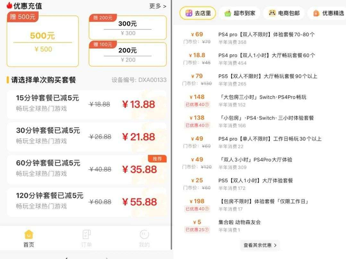 左为共享游戏机价格,右为体验店价格