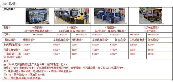 共享游戏机则是他们的新生意。据该公司的法人和加盟负责人介绍,“我司专注电脑、电视、游戏及软件开发,做技术研发和产品代工,主要给客户定制共享主机游戏机。(共享游戏机)这个项目我司2021年6月开始做技术研发,市场从2021年10月开始放开合作。”