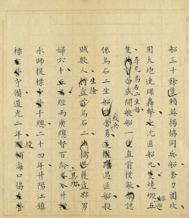 笔者最初很困惑,因为百龄的叙功奏折内,没有特别突显赖英扬捕获乌石二的记录,但《赖英扬列传清本》却是如此记载赖英扬捕盗:“嘉庆十五年,因积年巨寇乌石二等在广东海洋滋事,英扬随同舟师剿捕,歼毙甚众。侦知乌石二在儋州洋面游奕,赖英扬同兵船奋勇围攻,用大炮连环轰击,攻沉匪船九只、烧毁匪船五只,寻见乌石二坐船,直前扑敌,随奋勇逼拢跃过匪船,杀贼数人,将盗首乌石二生擒,共获盗伙男妇六十五名。经两广总督百龄上其功,升授水师提标中营千总。”在赖英扬列传定稿内,这段被删改得只剩下数语:“十五年巨寇乌石二等在洋滋事,英扬随水师剿捕,歼弊甚众。寻侦乌石二在儋州洋面游驶,复协同围攻,沉贼船九,毁贼船五,擒乌石二,获盗伙男妇六十余人,叙功升水师提标千总。”核对删文,赖英扬初稿原文应是抄自百龄叙张保仔功的奏折,只是赖英扬仅为正七品把总,为何把他的参战地位人设拔高,甚至将张的功劳拿过来抄?