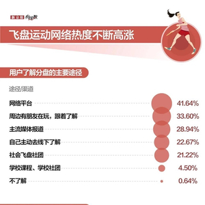 对于大多数人而言,虽然不了解飞盘,但肯定在网络社交平台、综艺节目中看到过与飞盘活动相关的内容,也正是在脱口秀节目的调侃、综艺节目明星互动、社交平台博主的分享等多渠道共同助推下,飞盘运动的热度一路高涨。