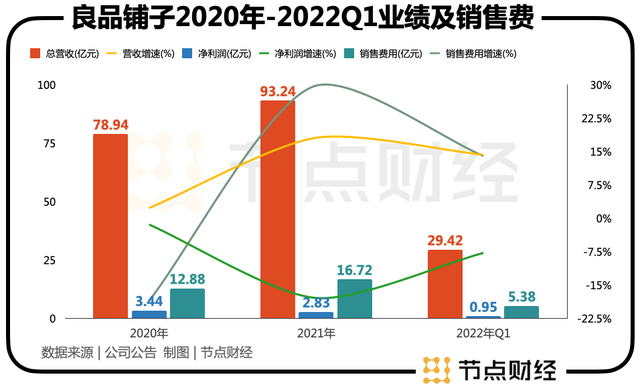 今年一季度财报显示,良品铺子的销售费用为5.38亿元,同比增长14.01%,同期营收为29.42亿元,同比增长14.3%。但是,同期净利润仅为9461.67万元,同比下降7.75%。