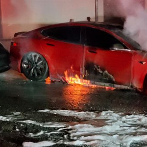 美国加州发生的一起电动车碰撞起火事故(资料图片)