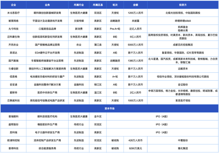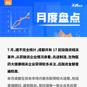 7月盘点:成都重要投融资事件及产业环境数据汇总