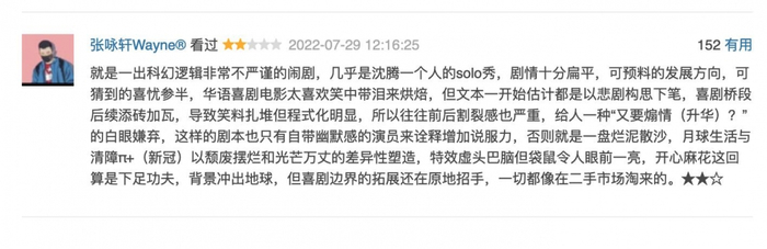 而从具体的评论中不难总结,观众对于《独行月球》的抱憾点大致上集中在以下两方面。