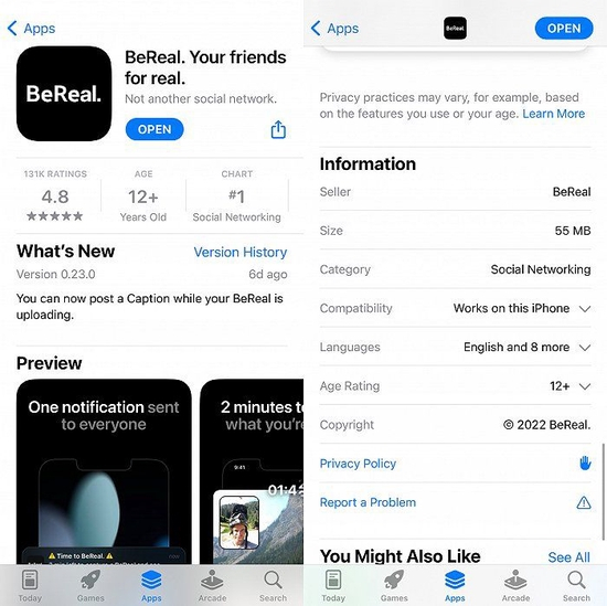 这款应用诞生后在法国本土大受欢迎,特别是年轻人群体,截至2022年2月,其80%以上的iPhone用户群年龄在16-24岁之间。今年初,Be Real再次席卷了美国大学生用户群体。