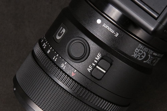 索尼E 15mm F1.4 G镜身上有一个按钮和一个开关,分别是可自定义的对焦保持按钮和AF/MF切换开关。对焦保持按钮可通过自定义设置,设定为实时眼部对焦等机身支持的部分操作,进一步方便了用户的操控。
