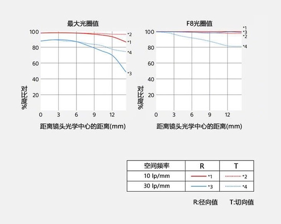 通过对比我们可以看到,这支镜头广角端中心的各档光圈表现都很好,当光圈收到F4时画质表现为最佳。而边缘的分辨率相对于中心就有所下降,最佳光圈同样在F4。