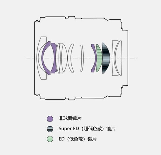 E 15mm F1.4 G采用了优化的光学设计和非球面镜片,在兼具大光圈和高分辨率的同时,还实现了轻巧的镜身设计,镜头重量仅约为219g。镜头采用先进的光学设计,3枚非球面镜片可有效控制广角镜头中常见的畸变,从中心到边缘的成像区域均可实现优异的分辨率表现。此外,镜头还采用了1枚ED(低色散)玻璃镜片和1枚Super ED (超低色散)玻璃镜片来抑制色差。