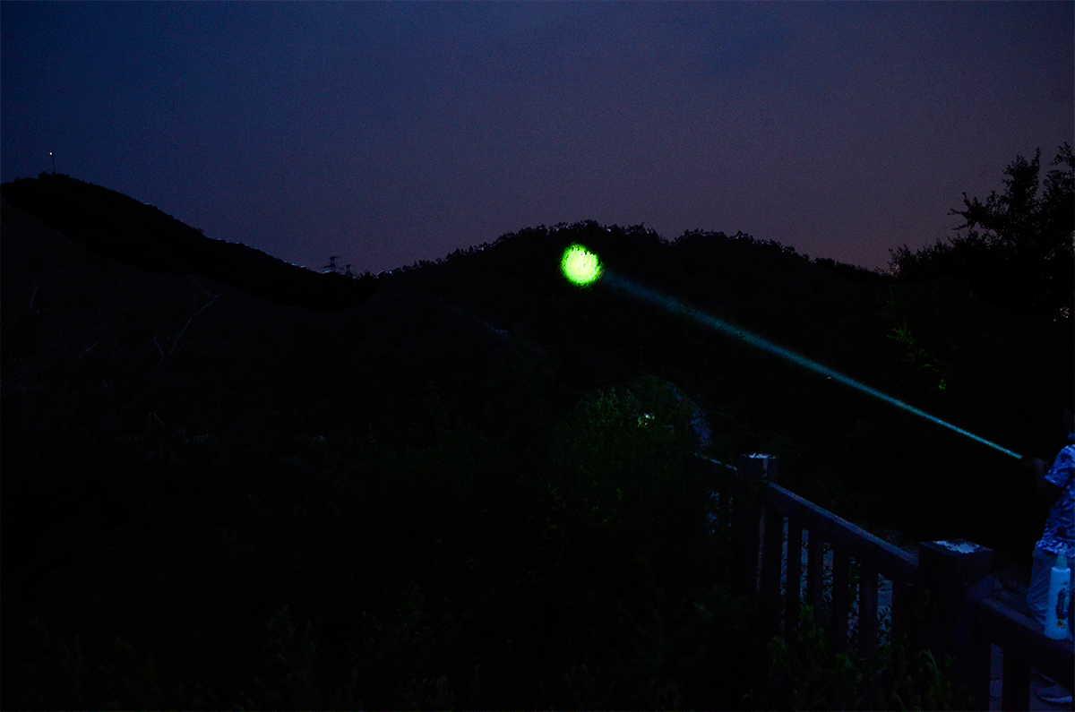 激光手电当然不是这么近距离使用的,远距离使用才是TH30R的用武之地,实际照明使用距离100米,光斑直径大致为3米左右,能够看清被照射的物体而不觉得刺眼。