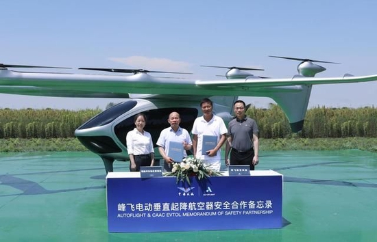 8月5日,中国民航华东局与上海市金山区华东无人机基地的峰飞航空共同签署“关于电动垂直起降航空器(EVTOL)安全合作的备忘录”。上海金山区 供图中国民航华东局表示,此次安全备忘录的签署,有利于深化民航安全合作、促进华东地区通用航空发展。双方将展开密切合作,深化型号合格审定阶段的全面对接,推进型号设计批准、生产批准和适航批准,加强适航人员培训和技术交流等一系列合作内容,确保峰飞多个航空器型号研发、制造与运行过程中的安全性,推动型号适航取证和审定工作顺利、高效地开展。金山区介绍,峰飞航空科技是国内最早投入eVTOL自动驾驶航空器赛道的科技企业之一,打造了一支由中、德、美专家领衔的国际团队,目前盛世龙全尺寸验证机已经进入常态化飞行测试。