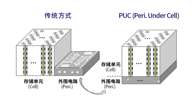 SK海力士在2018年研发的96层NAND闪存就超越了传统的3D方式,并导入了4D方式。为成功研发4D架构的芯片,公司采用了电荷捕获型技术(CTF,Charge Trap Flash)和PUC(Peri. Under Cell)技术。相比3D方式,4D架构具有单元面积更小,生产效率更高的优点。