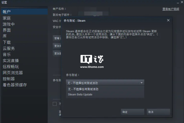 IT之家小伙伴如果想抢先体验到这一功能,可以点击 Steam 客户端左上角的“Steam”,然后点击“设置”>“帐户”来加入 Beta 测试。