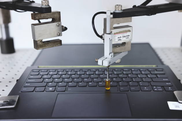 前伸、归位、落下,重复77次,一个机械臂就实现了对一块键盘生产全部所需的直径1.2毫米的螺丝钉预组装。除了机械臂外,AI、云计算等技术流淌到联宝这座“聪明”工厂的毛细血管中。厂里没有机器的轰鸣,底噪不大,微微侧身,就能听清工作人员不带扩音器的介绍。