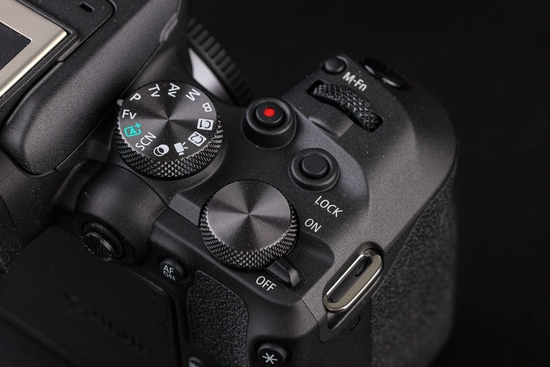 机身顶部的开关、拍摄模式拨盘、录制、锁定、M-Fn以及ISO等按键都集中在右手方便操控的位置,握持时手指可以舒适的落于快门与拨盘位置,调整其他参数时也能很快的找到位置,不会误触。