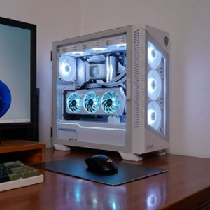 搭配白色款一体式水冷,选用得是九州风神 LS720 冰堡垒 白色款 ,效能对比主流旗舰产品方案,并不会逊色多少,颜值及灯效也比较能打,算得上是目前性价比较高的白色水冷产品。