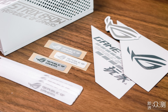 ROG的产品,一般都会附赠很多契合主题的附件,吹雪更是不例外,可以看到,除了贴纸、装饰带、扎带外,连说明书都做了风格化处理。