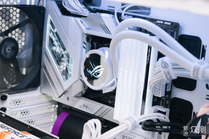 为了保证颜值的一致性,所以我使用的是这款ROG 吹雪 STRIX LCII 360 ARGB一体水冷。不愧是同系列的产品,放在一起颜值非常搭。