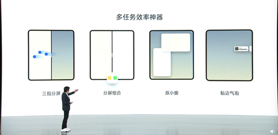 在大屏交互上小米MIX Fold 2也做了创新。三指滑动分屏快捷方便,能够一步完成分屏操作。侧边栏能够迅速呼出小窗或完成分屏,并新增支持了小窗贴边与气泡通知设计。
