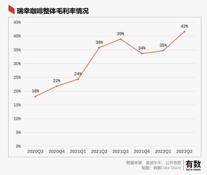 并且本季度,凭借稳定的拓店,供应链的成熟,谷爱凌和年轻化营销手段以及椰云拿铁引爆市场等利好因素影响,毛利率再次突破至42%,进一步打开盈利空间。