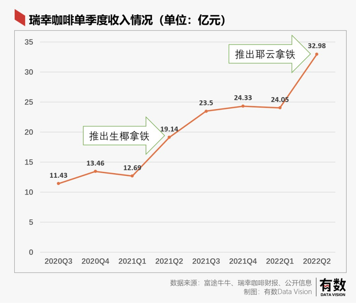 今年4月,椰云拿铁成功接棒生椰拿铁,单周销量495万杯,使得当季收入再创新高。