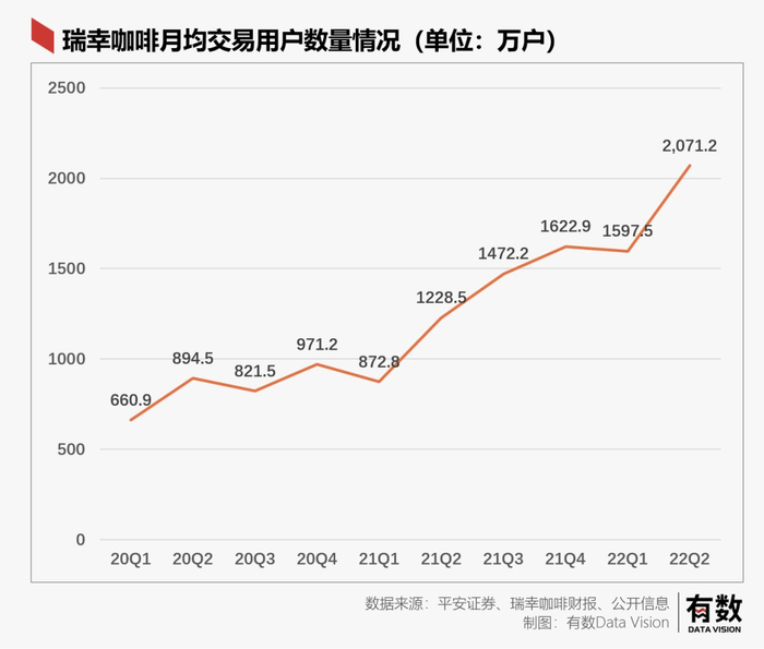 营收和毛利率的增长,只是财务上的体现。为其做强力支撑的则是瑞幸背后不断增长的交易用户。并且,在目前的宏观背景下,这更显得难能可贵。