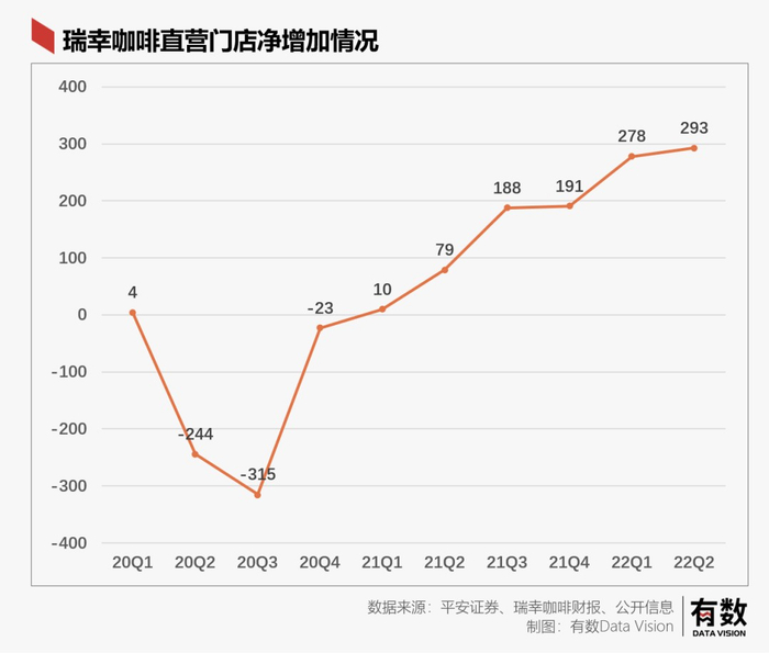 其次,瑞幸的直营门店的净增加数也在加速增长。