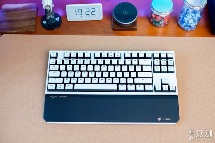 键盘买的多的后果就是,连媳妇这种对键盘完全没有概念的人都知道用好点的键盘。当然,她的玩法和我不一样,她就是看键位排列和键盘好不好看,比如必须要有数字区这种硬性要求。她目前在单位的主力键盘是之前我晒过的 黑峡谷 Y5,全尺寸的键位以及偏紧凑的布局很适合办公,淡雅的配色和磁吸手托看起来也很高档。不过注意一点,这把键盘如果在多人环境千万别选苍岭轴,这个轴好用但声音极大,像我就是把轴换成了丹霞轴。