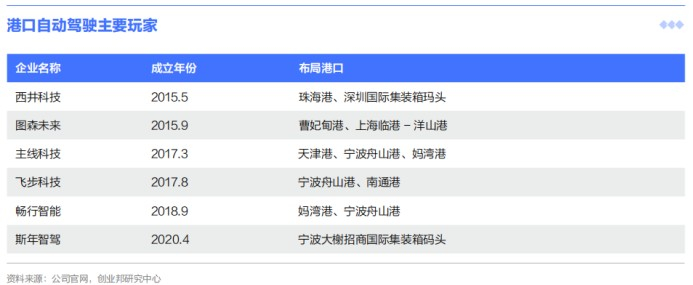 我国港口自动驾驶发展世界领先,玩家主要包括西井科技、主线科技、图森未来、斯年智驾、飞步科技、经纬恒润、畅行智能等创业企业,通过与主机厂合作将自身研发的解决方案配置在整车上,并落地港口,进行试验和商业化运营。