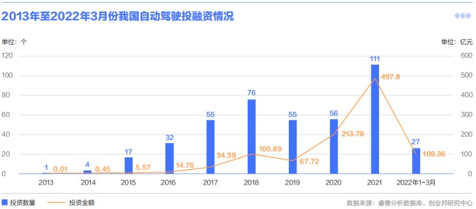 2020年市场开始回暖,投资金额大幅攀升至213.78亿元,2021年融资事件达到111个,融资额497.7亿元。