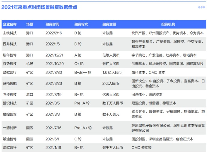 2021年11月,国内第一个由主机厂一汽解放发起的自动驾驶公司挚途科技拿到超亿人民币的Pre-A轮融资,用于以干线物流为主,港口等多场景自动驾驶技术的完善和迭代。