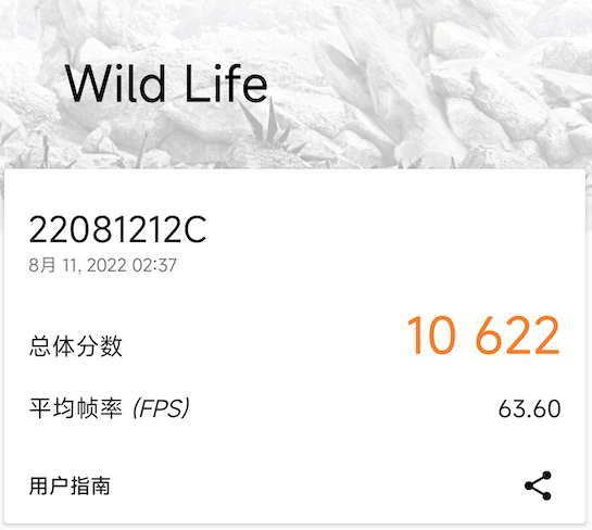 在3D Mark Wild Life测试中,分数为10622分。