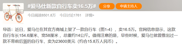 近日,著名的奢侈品品牌爱马仕就上架了一款自行车,而这款自行车的售价也引起了网友热议。