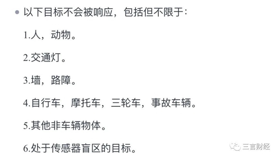 此外,用户手册提到ACC有几种目标不会被响应,包括但不限于:人,动物;交通灯;事故车辆等。