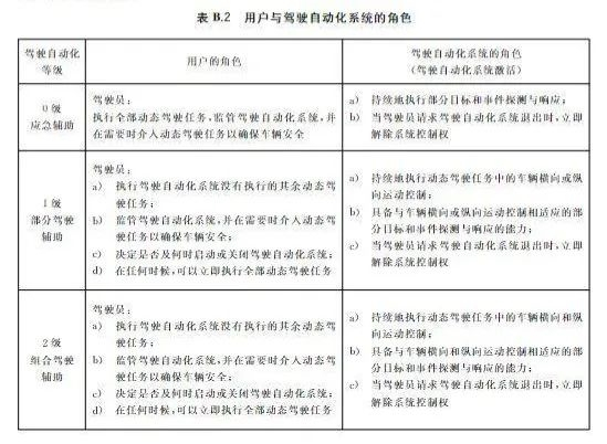 市场监管总局(标准委)曾发布过一套国家标准。其中,就有针对自动驾驶功能的《汽车驾驶自动化分级》国家推荐标准(GB/T 40429-2021)。对于2级组合驾驶辅助,明确提到了用户的角色——“监管驾驶自动化系统,并在需要时介入动态驾驶任务以确保车辆安全。”