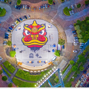 桂城南约社区网红球场,球场的醒狮涂鸦