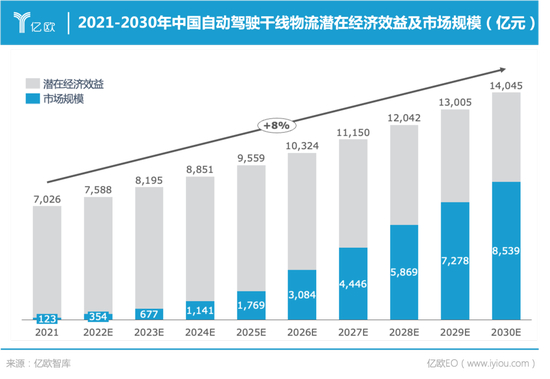 从场景应用规模来看,干线物流被认为是仅次于Robotaxi的第二大商业化应用场景,亿欧智库预测到2030年,中国自动驾驶干线物流的市场规模有望达到8539亿元,体量广阔。