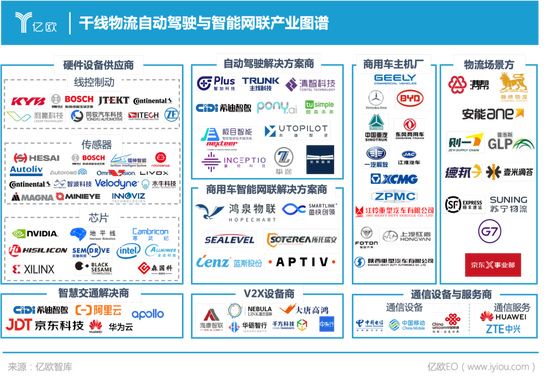 干线物流自动驾驶与智能网联产业的主要参与方包括自动驾驶相关企业、智能网联相关企业、商用车主机厂与物流场景方。