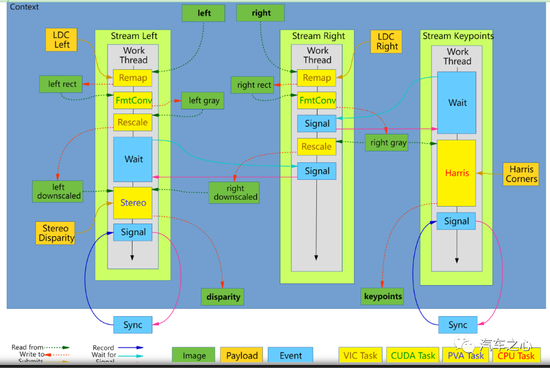 英伟达立体双目处理流程,立体双目视差的获得需要多种运算资源的参加,包括了 VIC、GPU(CUDA)、CPU 和 PVA。