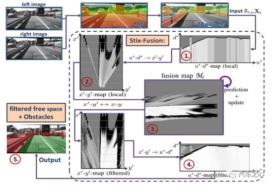 最后输出可行驶空间(free space),与单目、三目完全不同,它不需要识别,自然也不需要画出 Bounding Box。
