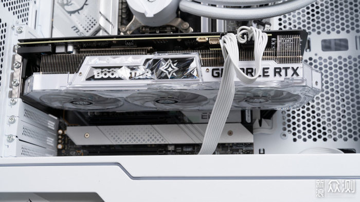影驰RTX 3070 Ti 星曜OC显卡,白透的导流罩就很适合待在这款机箱里面