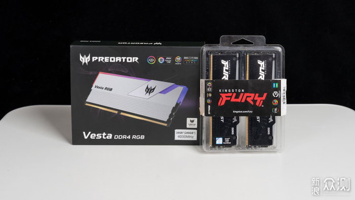 DDR4平台则是来自宏碁掠夺者Vesta 炫光星舰系列 DDR4 4000 8GBX2 RGB灯条,包装相对精致的彩盒形式,并且把产品渲染图直接展示在眼前,因为采用特挑三星B-die的关系(还不算是最顶级的,皇家戟尊爵版DDR4-4000 CL14表示弱爆了),它目前1000元出头的售价,其实价格已经相当于FURY BEAST DDR5 6000 8GBX2以及特定体质的裸条DDR5 4800 16GBX2,这次是容量不对等,价格几乎可以对等的高频内存对比测试。