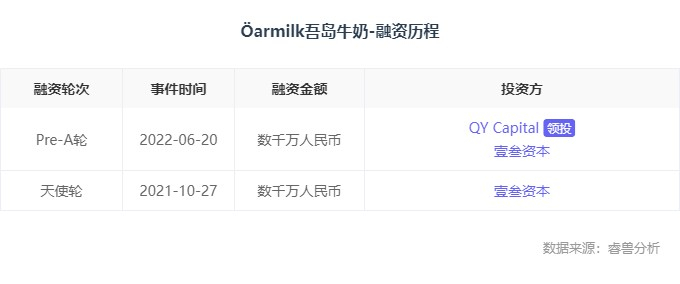 创业邦旗下睿兽分析的数据显示,Öarmilk吾岛是2020年9月成立的初创酸奶品牌,2021年10月完成壹叁资本数千万元天使轮融资,并在今年6月获QY Capital领投的数千万元Pre-A轮融资。