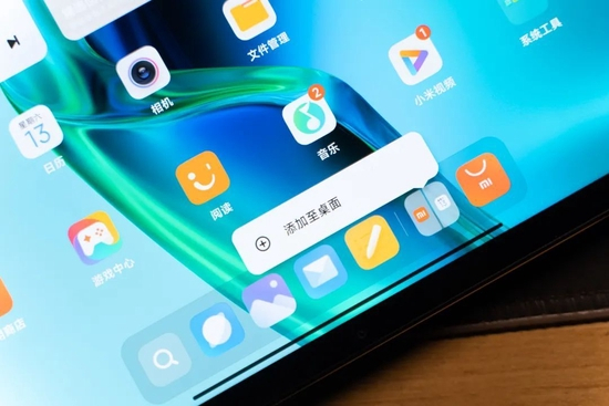 针对12.4大屏,MIUI Pad支持在全屏状态下从左右两边上划呼出全局任务栏,快速打开常用APP。此时如果把其他APP拖到屏幕边缘便进入分屏模式。自然地,用户也可以把常用的分屏组合保存为桌面快捷方式,方便后续快速启用。