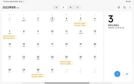 比如日历APP的首页月视图呈左右分栏布局,可以在显示日程的同时,同步展示天气、农历、限行等信息;